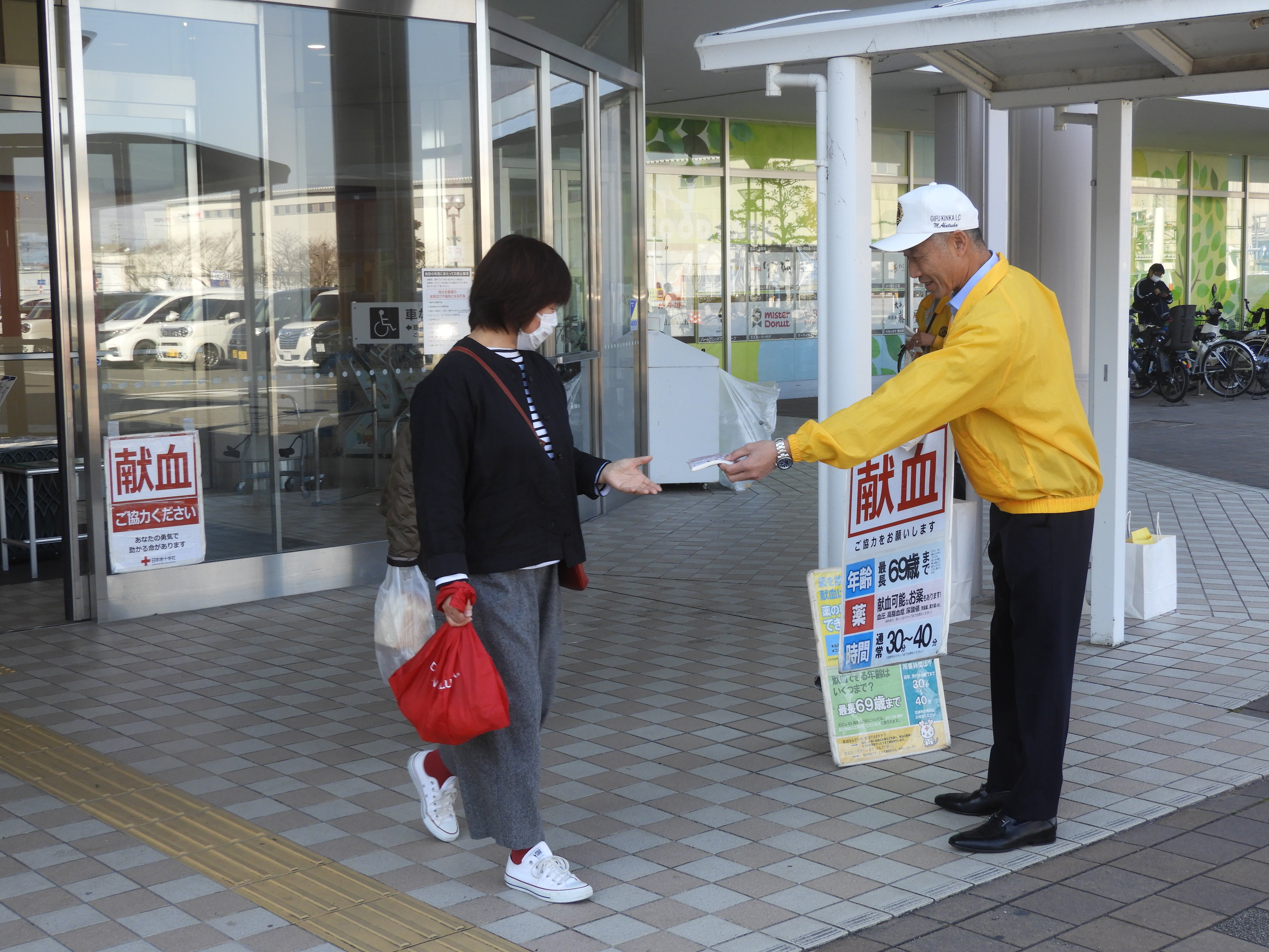 2/15(日)カラフルタウンぎふにて献血活動を実施 チラシとポケットティッシュを配布し献血の協力をお願いしました。お礼としてBOXティッシュ5箱セットお渡した。