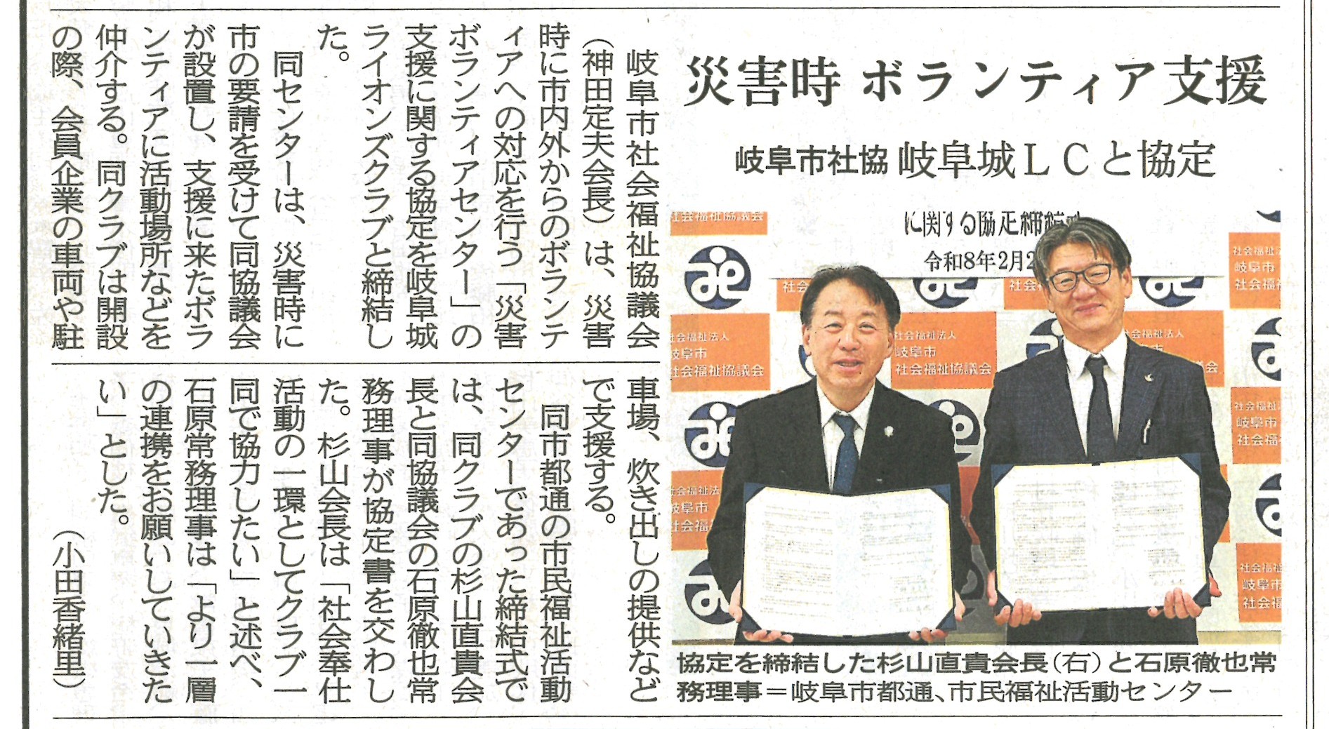 岐阜市社会福祉協議会ボランティアセンター支援協定