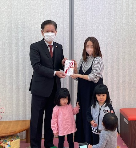 - 地元の大賀医院に設置させていただいている福祉募金にご協力いただきました皆様に心より感謝申し上げます。今回お寄せいただいた募金31,165円と事業費を合わせた35,000円を白川町子育て支援センターへ寄付させていただきました。