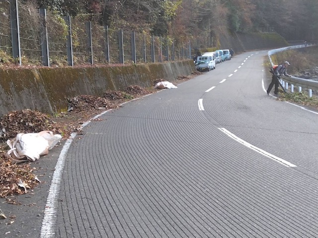 - 佐見地区の会員4名が、道と川を守る会で120名参加の清掃活動に参加しました。約3時間をかけて10㎞区間の落ち葉を集め、60袋分となりました。こちらはファームの田んぼの肥料として活用されます。