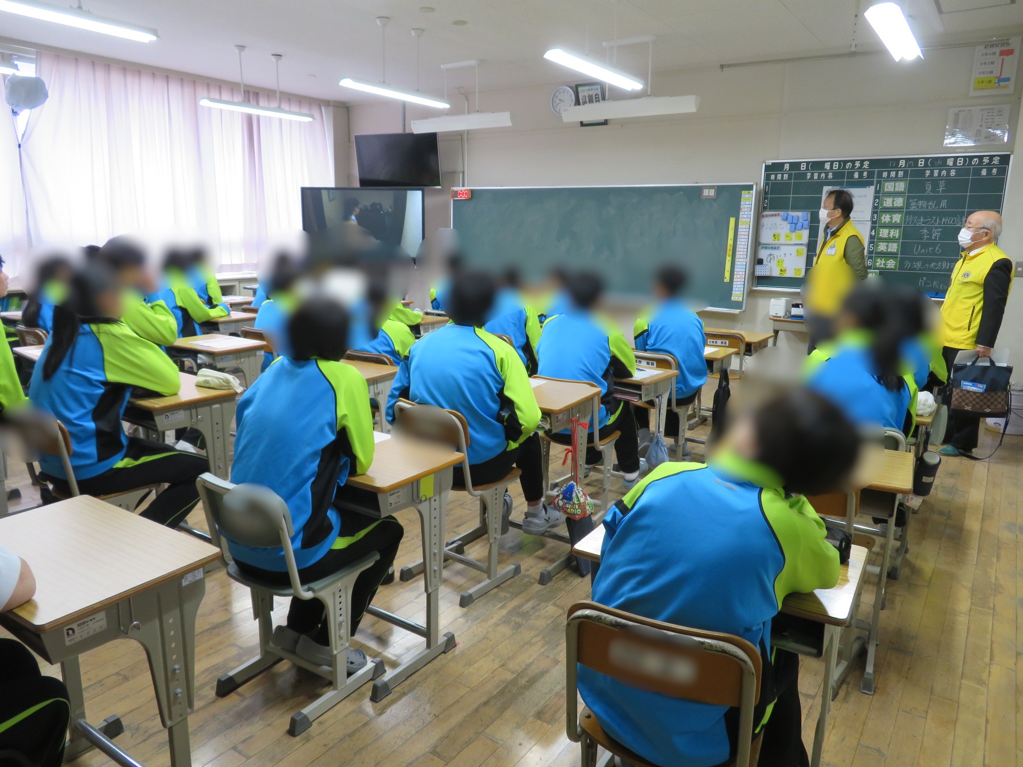多治見市立陶都中学校の3年生190人を対象に、違法薬物・オーバードーズの危険性について講義。DVD観賞後には