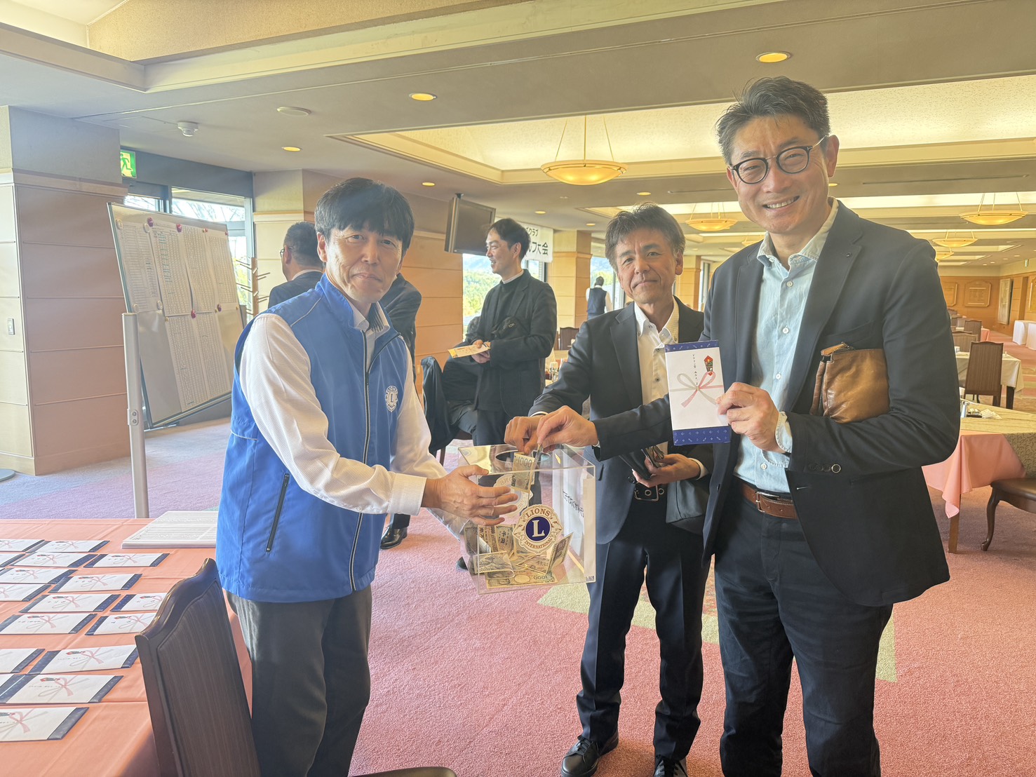 - 11月10日(月)6:30~14:30 岐阜関カントリー俱楽部にて、参加者はライオンズ・一般含め179名で競った。(社福)中部盲導犬協会より施設長と職員、盲導犬なるちゃんを迎え目録贈呈式を行い、盲導犬育成のための募金活動を行い402,486円を寄付した。チャリティ募金を179,000円獲得した。