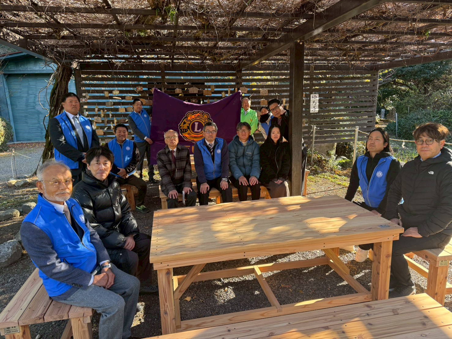 12月12日(金)13:30より岐阜護国神社境内藤棚下の古いベンチを撤去して新しいテーブル・ベンチ2セットを奉納した。会員14名で作業を行い、ご祈祷を受けてお披露目した。