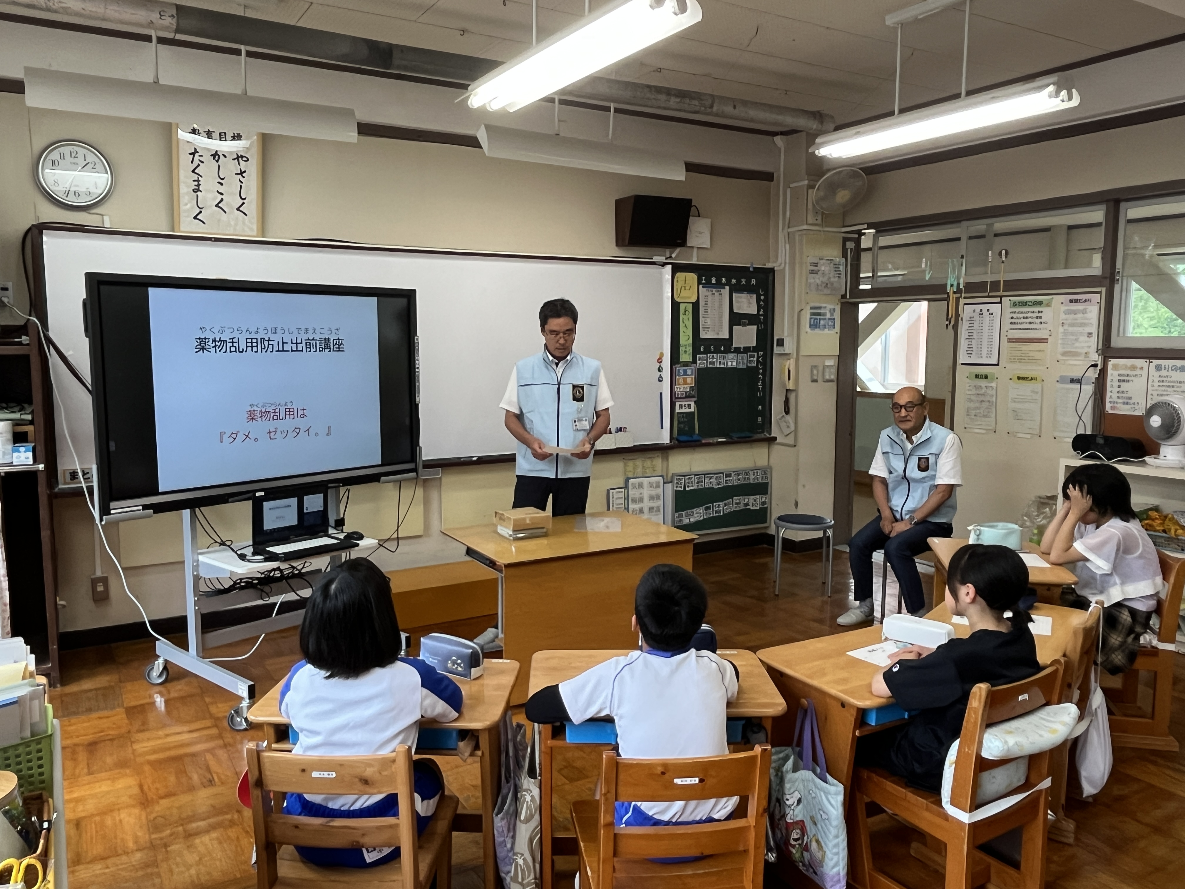 - 令和7年6月26日、今年度で閉校となる高山市立岩滝小学校の5・6年生5名を対象に「薬物乱用防止でまえ講座」を行いました。薬物についての知識が少ない子供達は大変真剣に耳を傾け、終了後は「危険薬物がとても怖いものだと初めて知りました。」等薬物、危険薬物の危険性を認知してもらえて有意義な事業になりました。